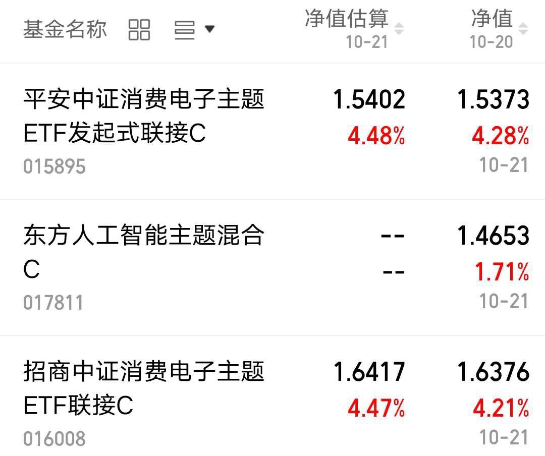 $平安中证消费电子主题ETF发起式联接C$ 今晚涨4.28%挺不错了