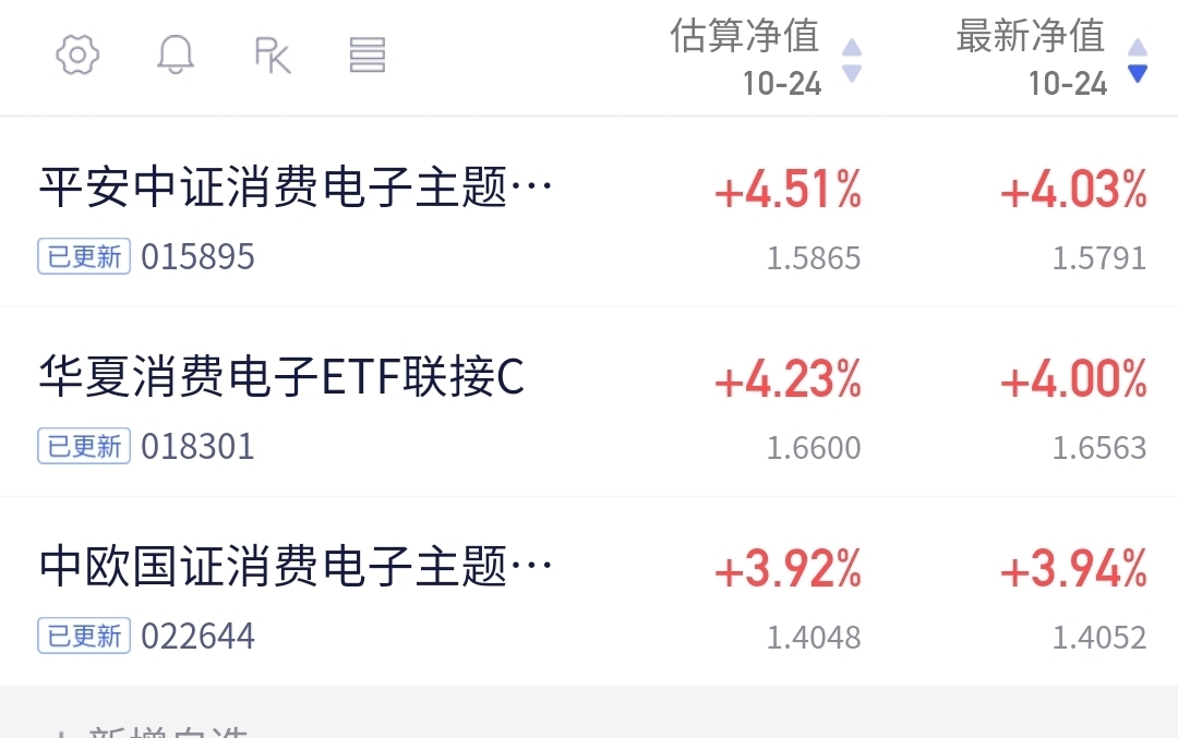 10月24日消费电子主题基金净值来啦。平安、华夏、中欧等优秀基金都更新了。$平安