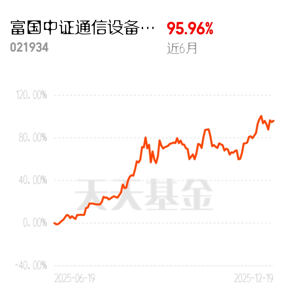 有没有发现,同样是科技主题,富国中证通信设备主题ETF联接C近6个月涨了96%,