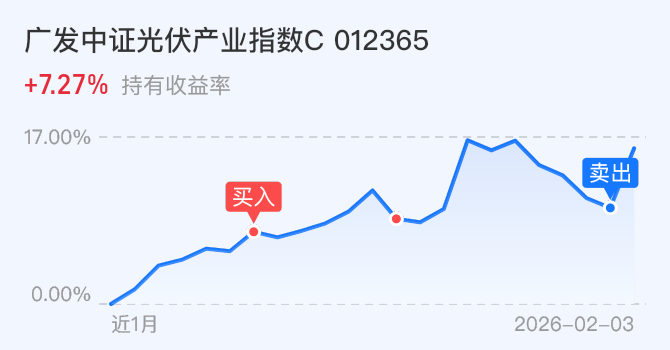跟踪的光伏产业指数这会看涨3%左右,卖飞了,真难受呀,没啥仓位了,以后涨就跟我没啥关系了。$广发中证光伏产业指数C$ $天弘中证光伏产业指数C(OTCFUND|011103)$