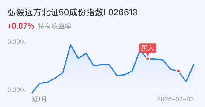跟踪的北证50指数这会看跌0.7%左右,20日线压力和半年线支撑中间震荡,我持仓不动。$弘毅远方北证50成份指数I$