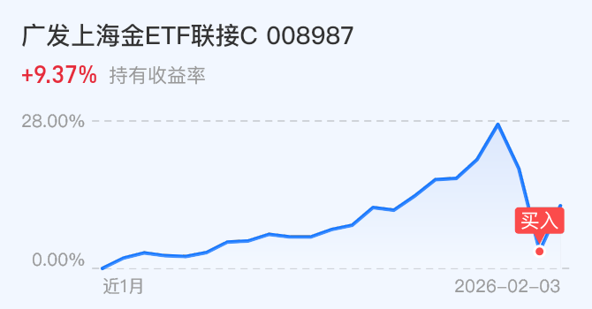 跟踪的AU9999这会看涨3.3%左右,前天买了点,尾盘看看如果涨的好考虑T出一些。$广发上海金ETF联接C$