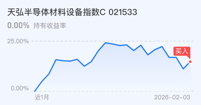 我加仓$天弘半导体材料设备指数C(OTCFUND|021533)$10000元!跟踪的半导体材料设备指数昨天大涨3.32%,今天盘中有个冲高回落,短线看能不能向上突破下20日均线压力,趁这会看跌0.5%左右,我继续提升仓位了。