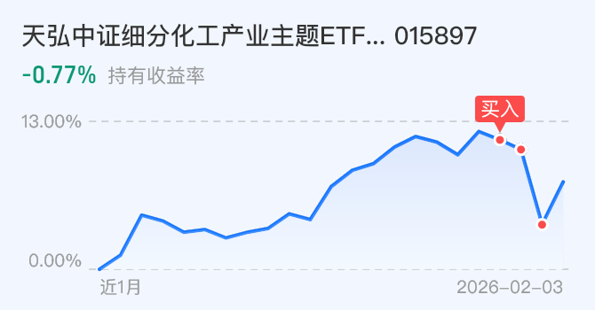 我加仓$天弘中证细分化工产业主题ETF联接C(OTCFUND|015897)$10000元,跟踪的细分化工指数这会看跌0.1%左右,相比别的方向还是表现比较强的,我这块仓位不多,趁调整今天再上一笔。