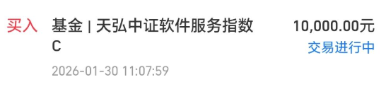 今天我买入$天弘中证软件服务指数发起C(OTCFUND|021536)$1万块钱。