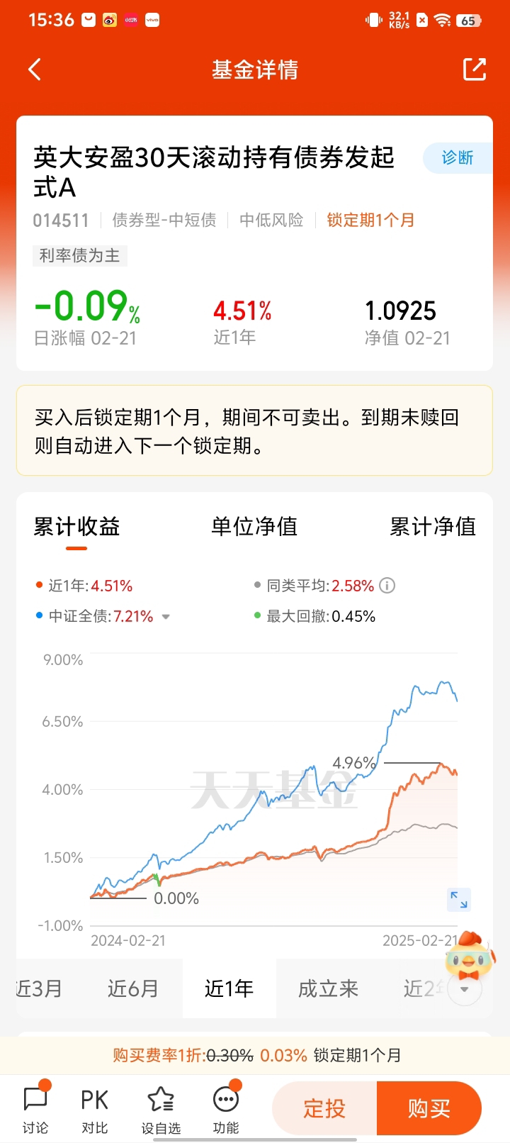 其实,方正富邦睿利纯债C是这样一只低调的赚钱“实力派”。根据数据显示,截至2月22日,该基金近1年收益率达到5.88%,高居同类前6%,远超同类均值。