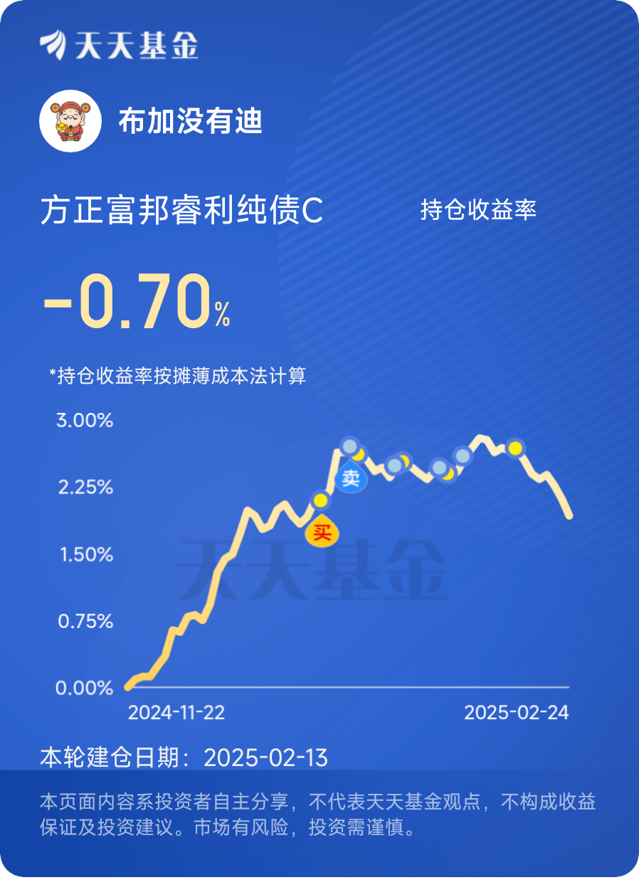 总之,方正富邦鸿远债券C作为一只具有潜力的债券型基金,在当前市场回调的背景下,为投资者提供了一个值得关注的投资机会。通过逆向投资的方式,投资者有望在未来获得更为理想的投资回报。@方正富邦基金