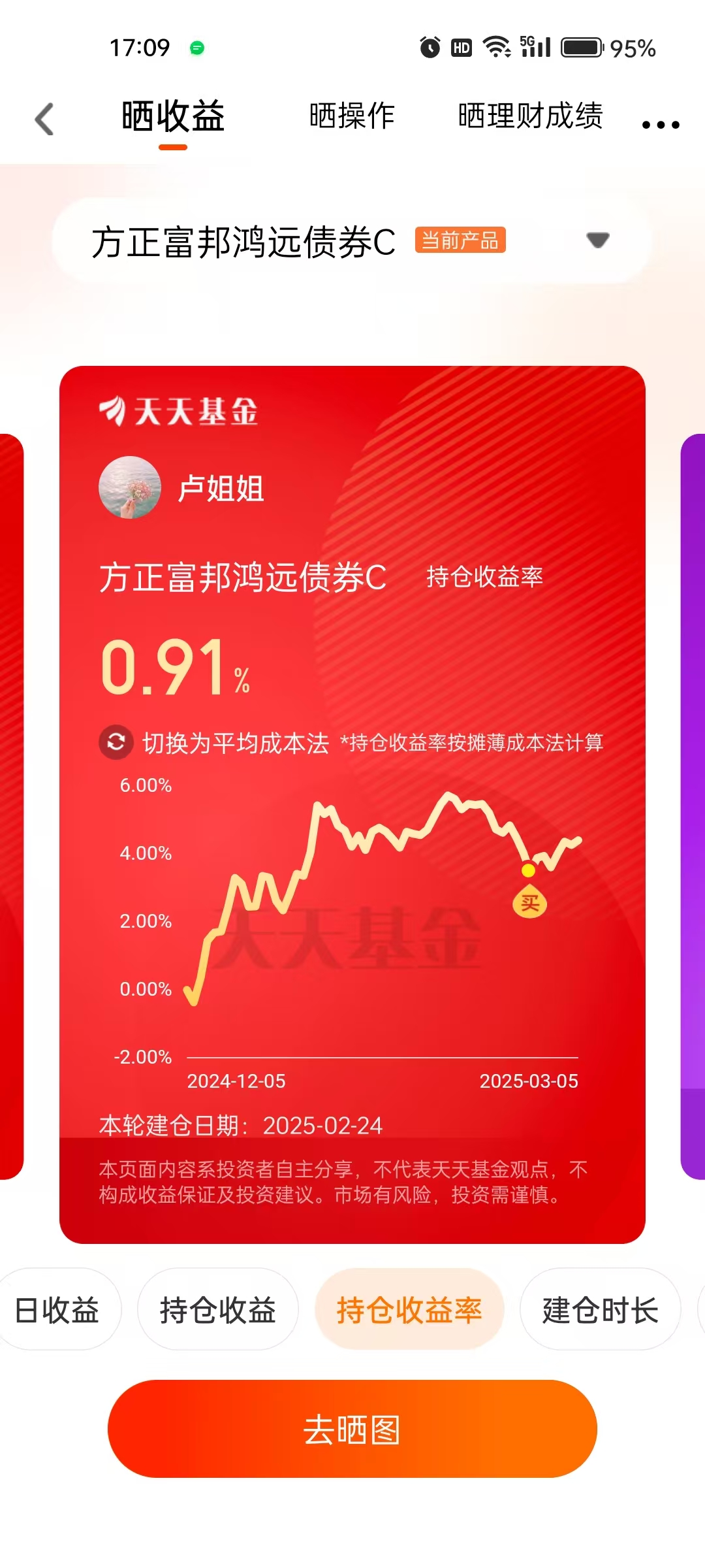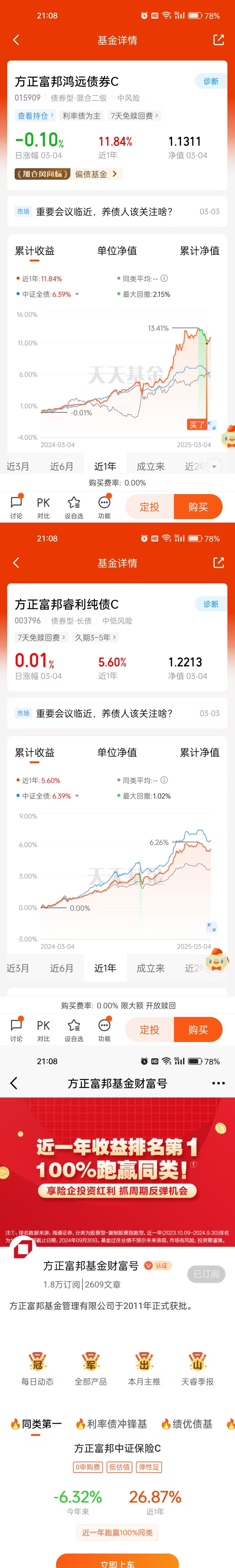 #方正富邦债基姐妹花#打卡第15天,我非常看好方正富邦鸿远债券C(015909),今天下午A股和港股纷纷跳水,今天碎蛋83个,继续努力。