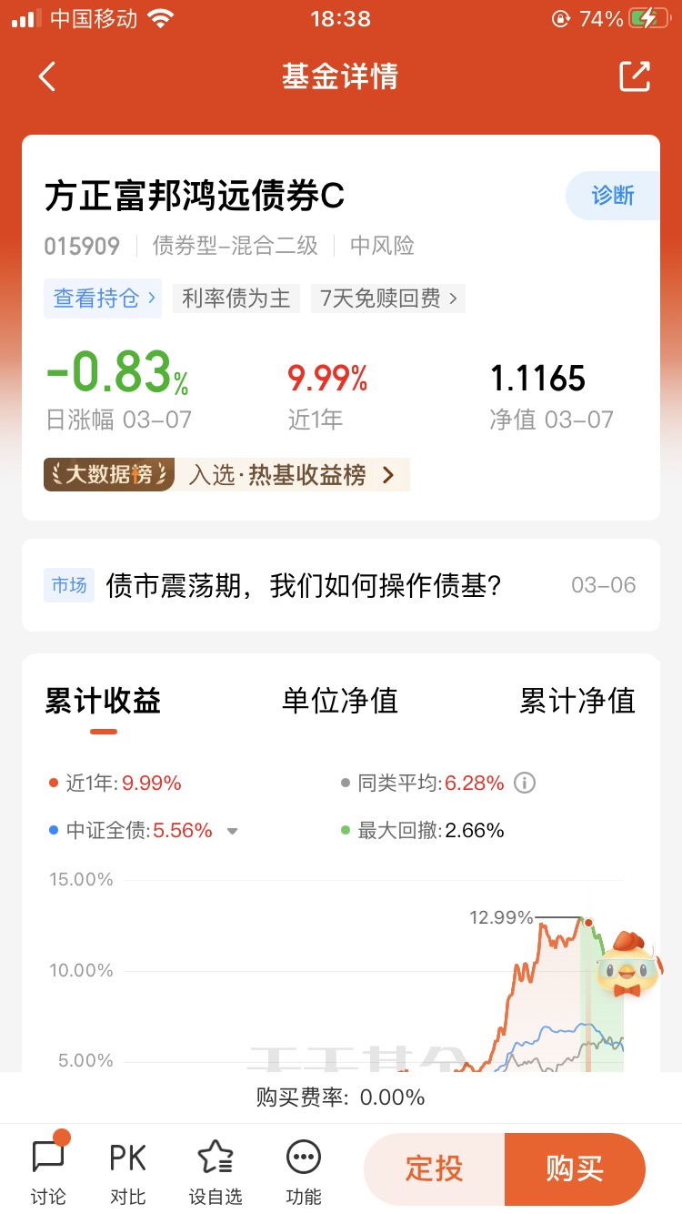 打卡第25天,方正富邦这对债基姐妹花我选择$方正富邦鸿远债券C$,在利率市场化波