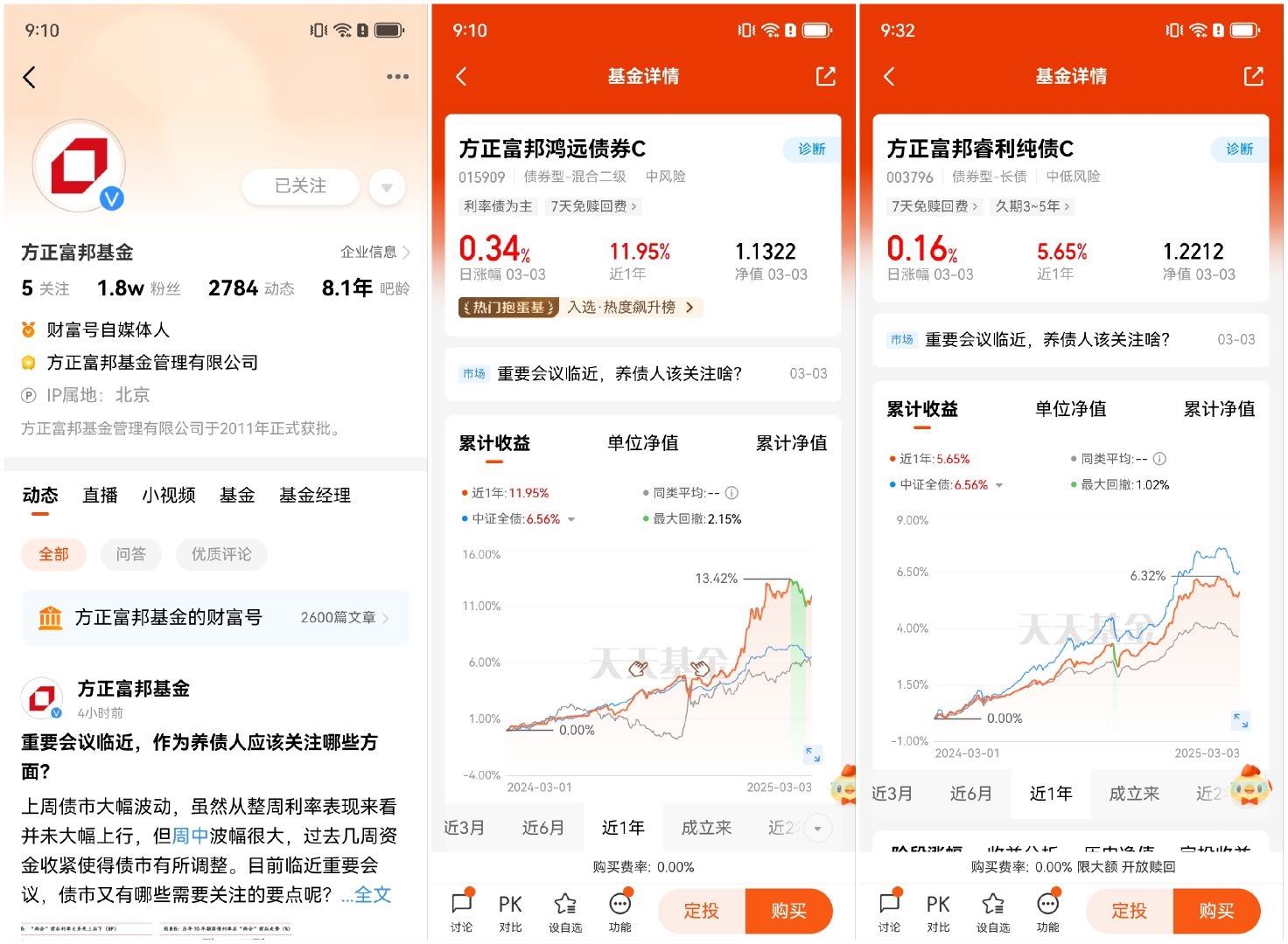 历史业绩是检验基金能力的试金石。方正富邦鸿远债券C近一年收益率达13.31%,远超同类平均7.44%,四分位排名“优秀”。更难能可贵的是,其近三年累计收益率28.7%,年化收益8.7%,最大回撤仅1.8%,远低于同类二级债基平均3.2%的回撤水平。投资者小王自2024年10月持有至今,收益率已达7.10%,他感慨道:“在债市震荡中,这只基金就像一位稳健的舵手,让我省心又安心。”