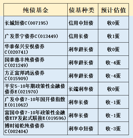 晚上超长端利率债基可能收蛋或碎蛋。长端利率债基可能碎蛋,中短利率债基可能收蛋或碎蛋。