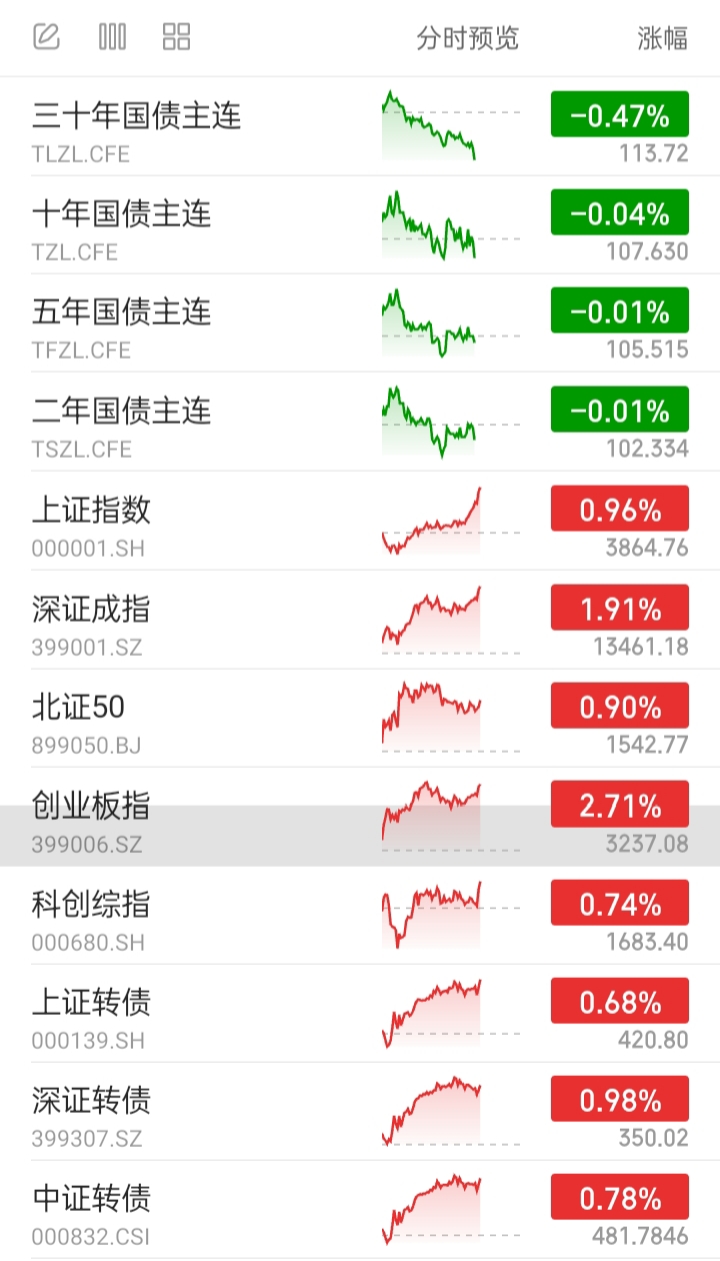 下午股市快速上涨,目前全部上涨。可转债主要指数全部上涨。
