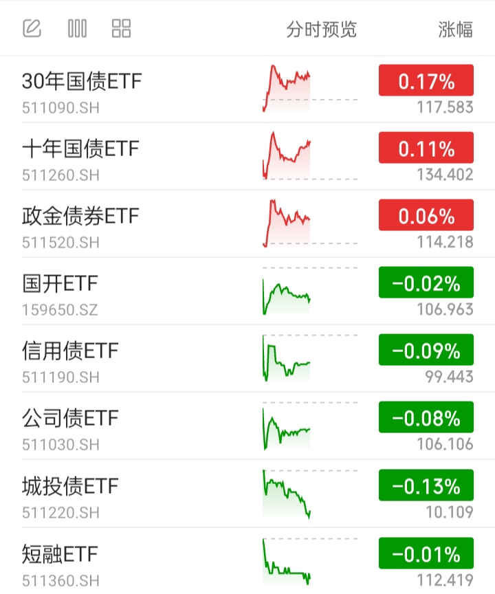 政金债券ETF,代表7-10年中长端政金债基。上涨