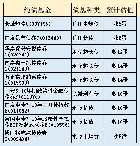 晚上超长端利率债基可能收大蛋。长端利率债基可能收大蛋,中短利率债基可能收中大蛋。