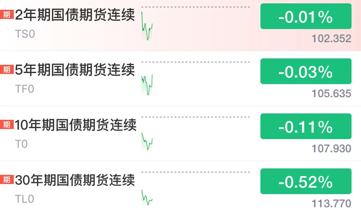一、国债期货:-0.125%(反映市场对未来债市预期,国债期货越涨,债市越涨,两者正向关系)