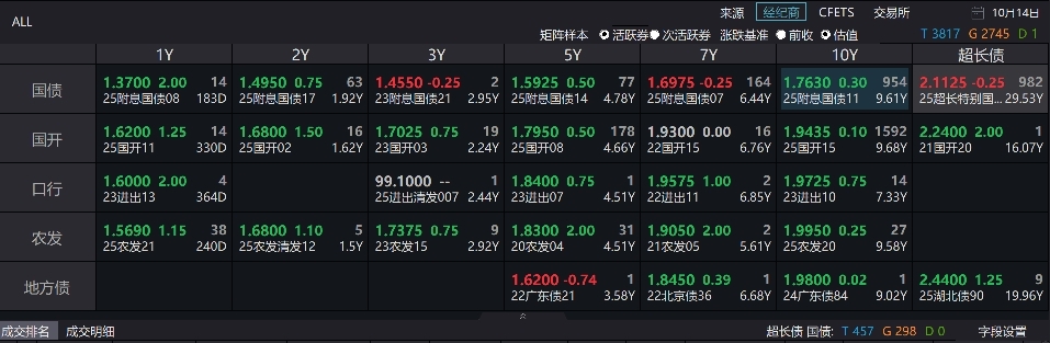 关税扰动没那么快结束的,避险情绪还在的,现在30年主活跃券已经翻红了。