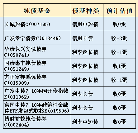 晚上超长端利率债基可能收蛋或碎蛋。长端利率债基可能收蛋或碎蛋,中短利率债基可能收蛋或碎。