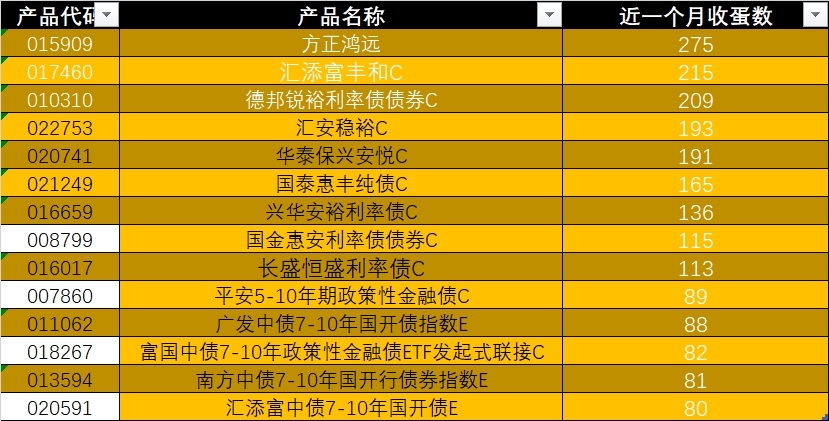 不扒不知道,一扒吓一跳!网红利率债基的收蛋差距也太悬殊了吧,看来买债有时候光看名字还是不行的~方正一路领跑稳拿第一, 比第二都要多60个,华泰甚至直接落后 84 个蛋,这差距也太大了!