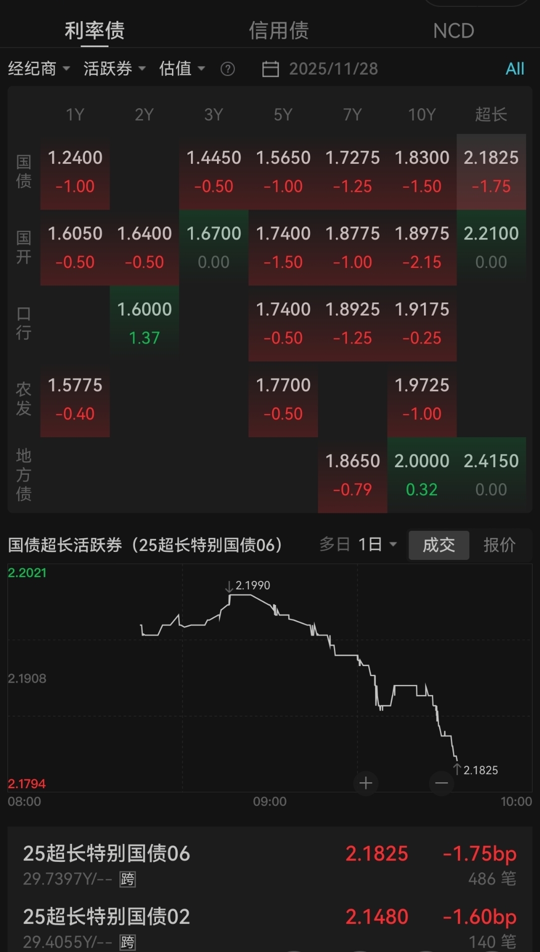 最新行情:长债回暖,超长已经红了1.7个BP了。