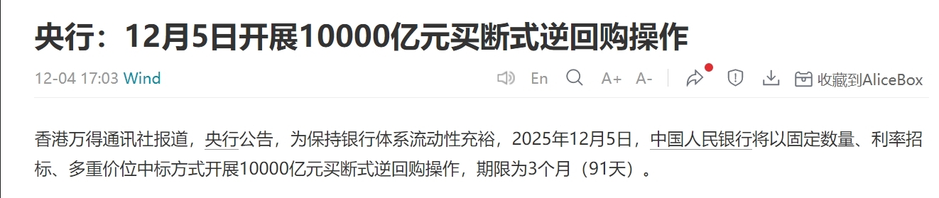 这个万亿投放就是说明央行注意到了现在债市的情况,在表态,已经开始呵护债市了。