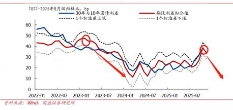 按照过去三年超长债的点位合理区间来看,对应的是30-10年利差中枢在32bps左