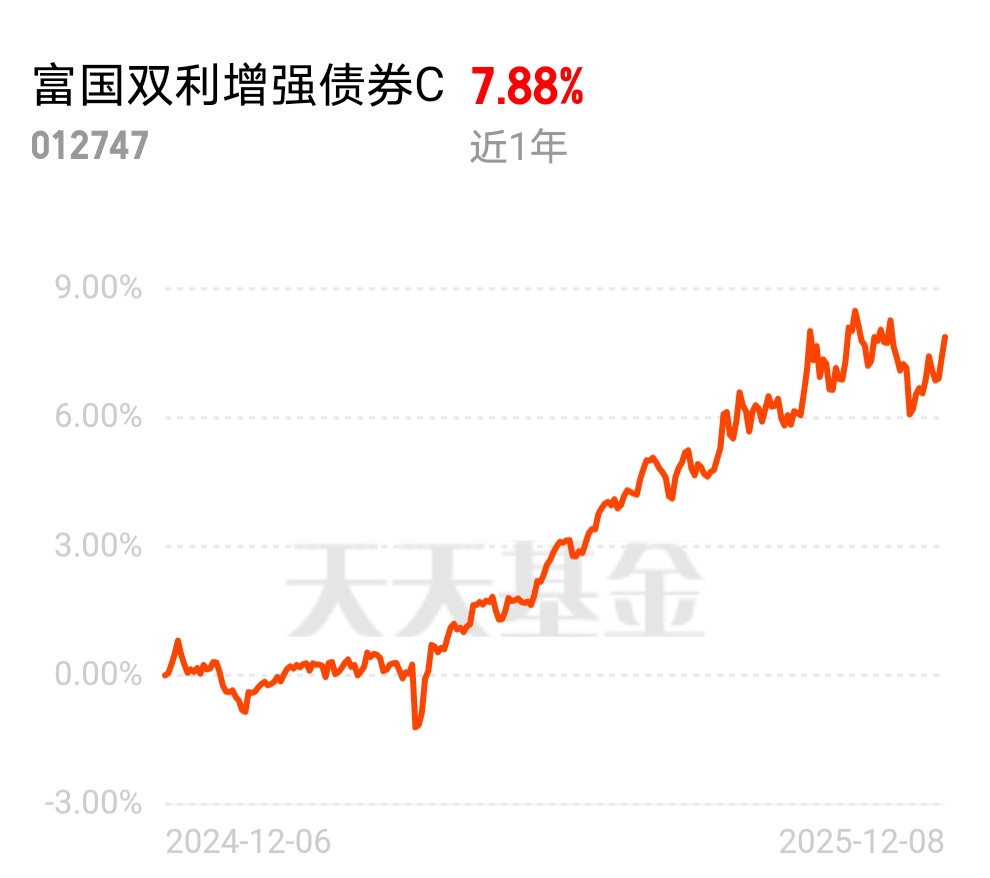 这阵子方正富邦鸿远C一直没动静,反而更关注手里另一只富国双利增强C连涨3日,近1周赚了0.4%,近1个月虽没涨但领先了绝大多数同类型基金;拉长看,近3个月1%、6个月5%、1年8%、2年15%,各阶段都稳在前列。基金经理擅长宏观择时和大类资产配置,三季报聚焦有色、非银等周期行业,振荡市里这思路挺清晰,富国双利增强C值得考虑配置一点。