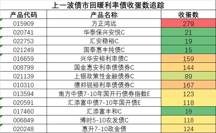 当前来说10Y国债活跃券的区间应该在1.7%-1.85%之间,中长端确定性还比较高,今天看上去抛压缓解了。从目前来看,债市利多因素逐渐增多,预计债市最困难的时刻会过去的,但是我们仍然要学会均衡配置。也就是要布局一些收蛋猛的产品,比如方正鸿远。当然也得搞一些收蛋数少一点的,波动小一点的,这样才可以平衡波动。而且最重要的是别频繁操作!债基适合 “拿住”,蚂蚁基金里很多人买了涨一点就卖,反而赚不到钱,现在债市慢慢好起来了,至少拿 1 个月以上,收益才会慢慢出来。