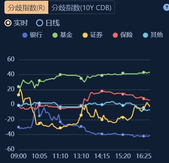 看这个图,其实发现机构的卖压有所下降了,基金今天是全天买入的,看上去是从空头已经转为多头了,债市可能后面有一波机会了。