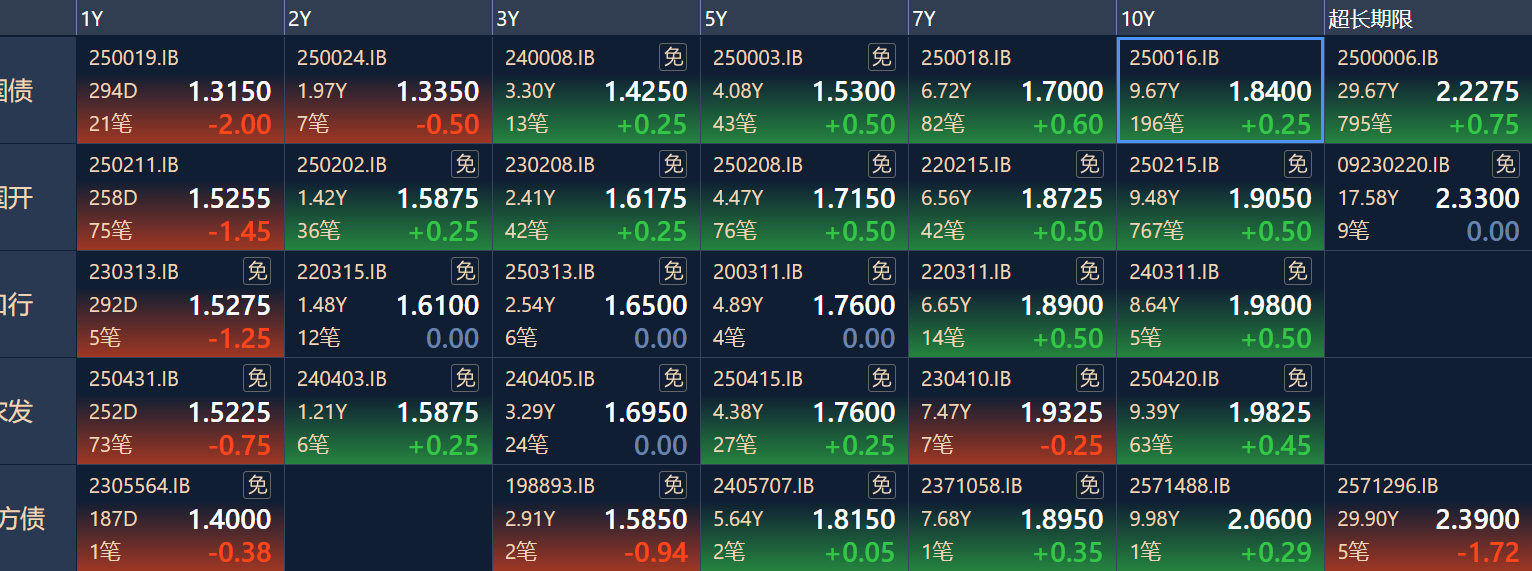 二、十年期国债收益率:1.84 0.0025%(国债收益率越涨,债市越跌,两者反向关系)