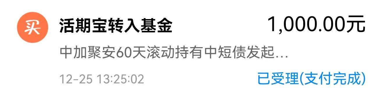 (1)此前小涵建仓的$中加聚安60天滚动持有中短债发起式C(OTCFUND|013352)$体验还不错,非常稳定,适合作为底部“安全垫”,近1年涨幅2.68%,跑赢了市场同策略水平,而作为不少伙伴熟知的东海祥苏短债今年的表现力远不如中加这只基。近一周中加聚安收获8个蛋,在中短债中下蛋能力还是不错的。本身个人强调宽松体感背景下,中短债很占优,那么在中短端债基中,选一只优秀代表中加聚安肯定榜上有名,中加聚安主要投资中短高评级信用债,不做信用下沉,票息收益较厚,在历史日历当中,2023、2024年中加聚安保持年均4%左右的收益,长期业绩也是非常棒的,安心做底部资产拥有了,今天加仓1000元,安心拿着做底仓。