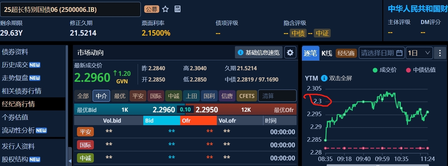 逐笔数据看,一到2.3%附近,入的慢慢多起来,这个点位是底了吧。