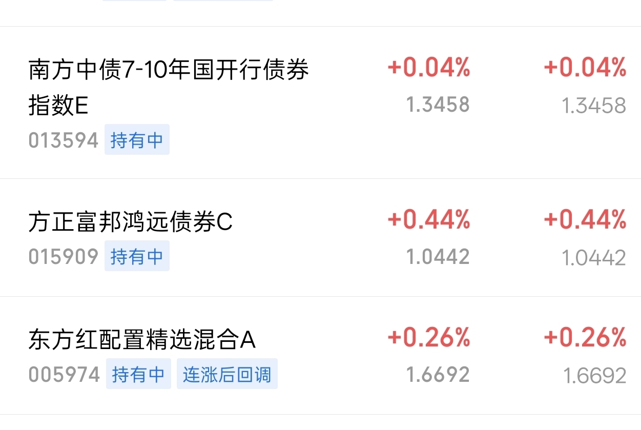 债市今日整体偏强运行,利率债收益率小幅下行,信用债表现分化。资金面维持宽松格局,隔夜与7天利率分别位于1.27%和1.45%。$方正富邦鸿远债券C$ 今日到账44个蛋,连续两日累计87个,节奏平稳。