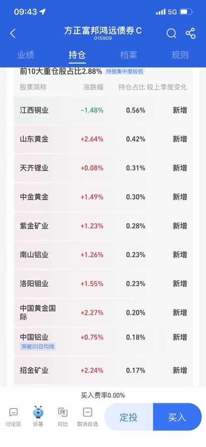 可以啊,基本上今天有色都是红的,有色又能给带来点超额收益了,比单纯的超长债好多了