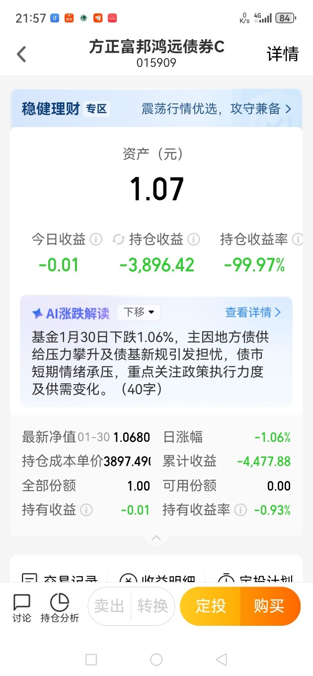 亏四千多但我昨天清了。自从有了有色天天提心吊胆。最好机会出清。一般人也做不到