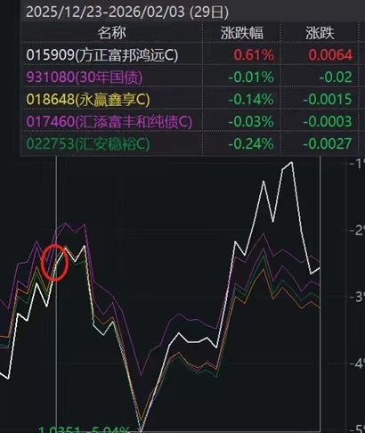 我觉得不止是我,还有还多朋友其实应该也是在这个红圈的位置又进场或者加仓的,其实大家可以对比下这几个超长债为主产品的表现。就这种波动的市场环境,其实这个利率+确实是给了超额收益的,数据不会说谎的。