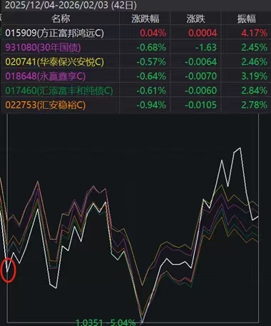 就很简单的例子,不少兄弟可能就是我画圈的那个地方抄底进来的,那个实话鸿远就已经是利率+了,咱拿两个月时间,如果没有这个+来对冲超长债的波动,现在就还是负的。看看30年,碎68个蛋,咱们还多4个蛋。如果之前就逐步走了,肯定收的更多,这不妥妥说明利率+的效果嘛。
