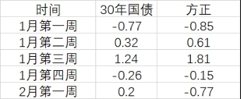 从今年以来的表现,拉到周频看:过去5周,方正在3周跑赢30年国债,而且在上涨周期
