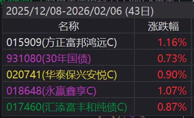 虽然今天超长有些回落,不过今天的超额收益还是要不少,还是因为鸿子的利率+策略啊,毕竟今天是1+1大于2的效果,肯定股债都红涨的更多啊。近两个月业绩方正继续领先,比30年国债多40多个蛋。