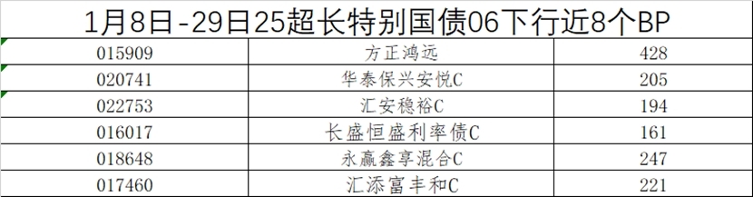 1月8号到29号,30年国债下了8个BP,按纯超长债的收蛋水平,久期都得拉到30–35才勉强够看。但鸿子搞“利率+”,久期不用那么高,收蛋反而更多——说明收益弹性确实比纯超长债强,后面股市一暖,优势会更明显。