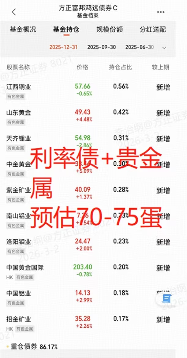 现在美伊局势,有色金属也是强势拉升,现在已经涨了超过1个点了,加上利率债现在也是红的,现在鸿子这个利率+贵金属的投资逻辑得到验证了,今天要收下大蛋了。
