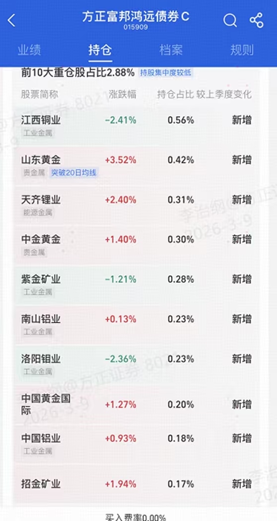 利率债+有色金属本质上是依靠+有色(特别是贵金属与工业金属)在“复苏/滞胀”象限的高弹性,去弥补长债在“低利率震荡期”的收益风险,所以今天债市因为通胀预期出现调整,股市在情绪释放后回暖以后,有色金属的股票也是开始涨,这样就出现了一些对冲,能够让咱们感觉强一些。