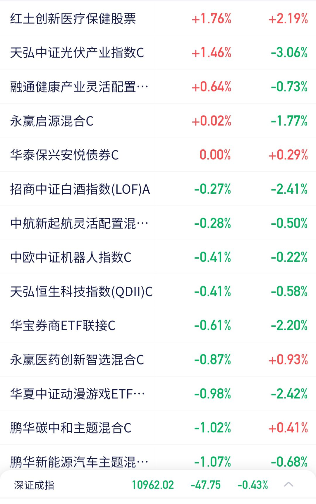 以下是部分基金实时估值:13:59分数据