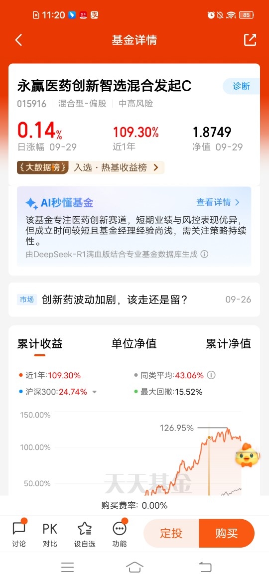 $永赢医药创新智选混合发起C$ 主投A+H市场灵活捕捉估值洼地。近期政策也利好不断,支持医药创新研发,昨天涨幅0.14%,近三个月涨幅24.05%,近六个月涨幅56.42%,近一年涨幅达109.30%,弹性十足的,今年医药趋势向好,最近AI医疗有热点催化,创新药才是未来医药的大方向。#牛市旗手回归?券商板块异动拉升#
