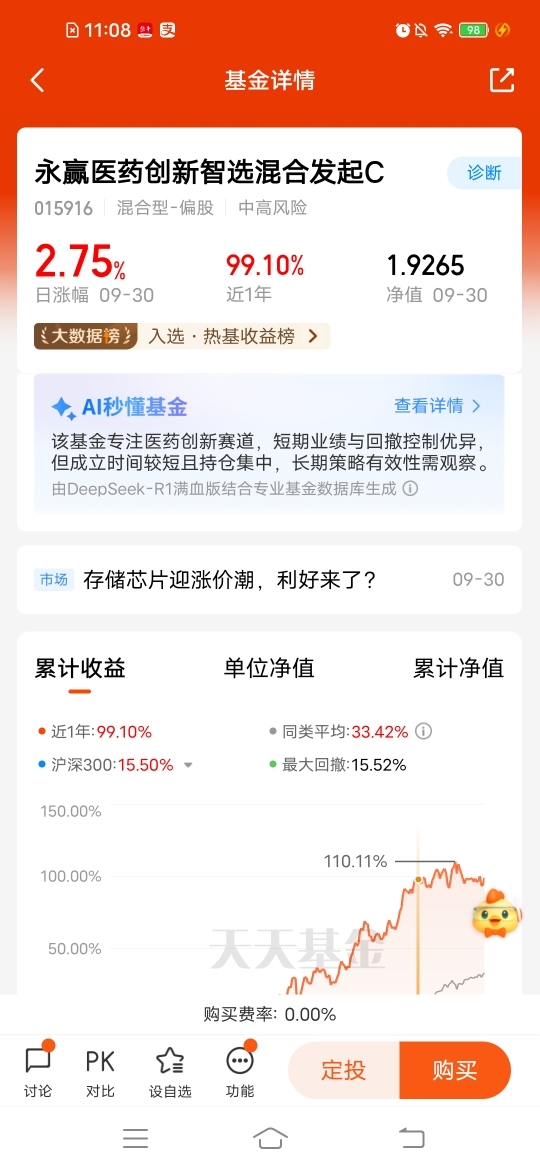 $永赢医药创新智选混合发起C$ 有波动就有机会,聚焦港股+A股优质创新药,把握两市医药创新领域的投资机会,抗风险能力强,同时弹性更高,最近AI医疗有热点催化,性价比又极为突出,近三个月涨幅26.65%,近半年涨幅61.92%,近一年涨幅99.10%,整体的估值也不是很高,所以机会依旧是很明显的!#DeepSeek、寒武纪同步发布引关注#