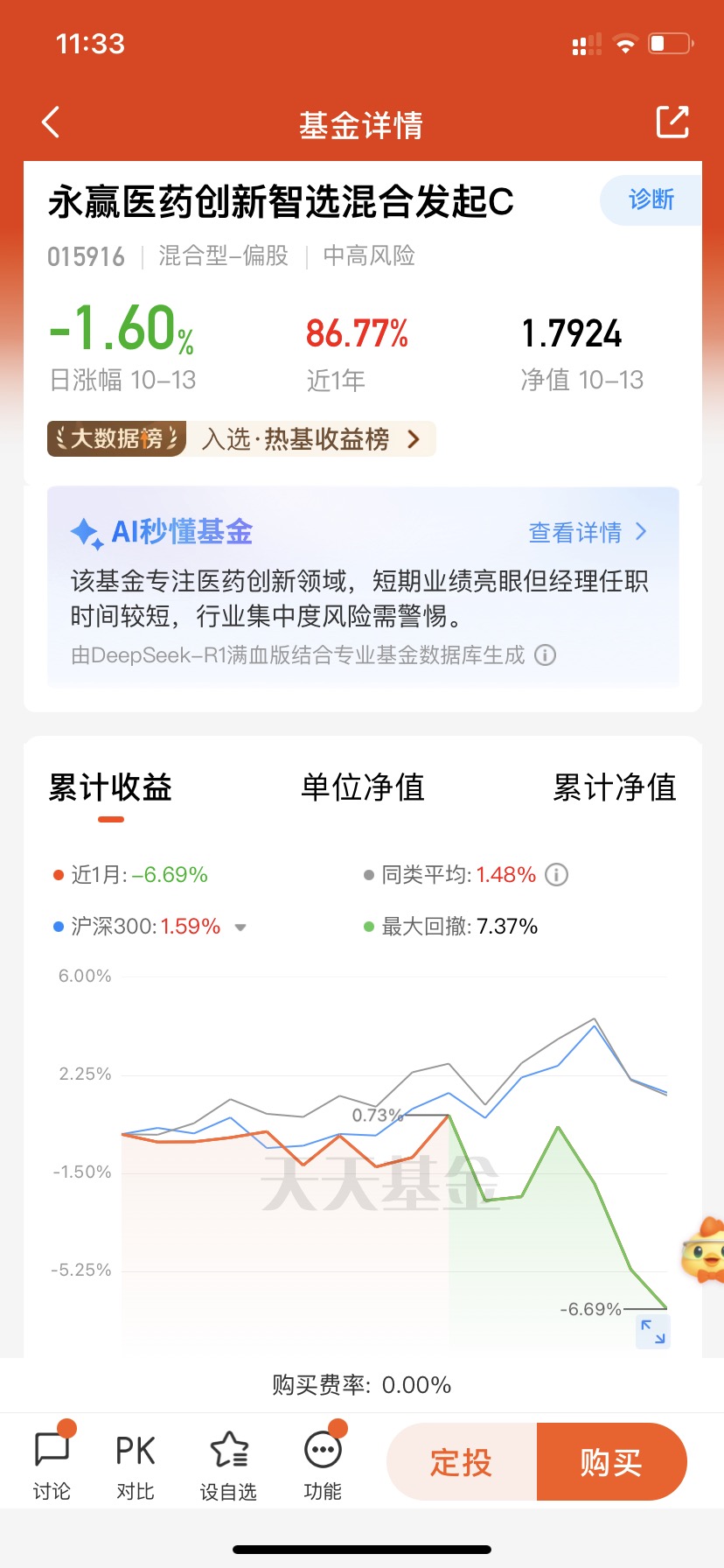 $永赢医药创新智选混合发起C$ 聚焦医药创新赛道,有着A和H两地创新药,弹性还是很强的,近半年46.63%涨幅,近一年86.77%涨幅,业绩表现优秀啊!医药板块上半年表现亮眼,可以说是市场上最靓的板块之一了,近期虽然有些震荡,但是长期趋势不变,值得期待了!#全球市场深夜暴跌!纳指重挫超3%#