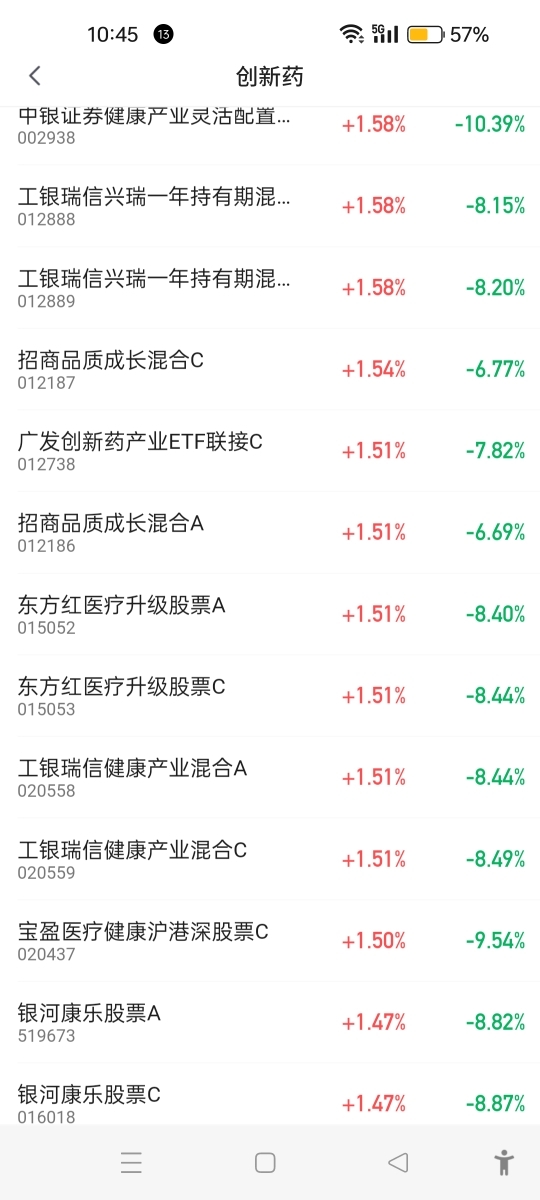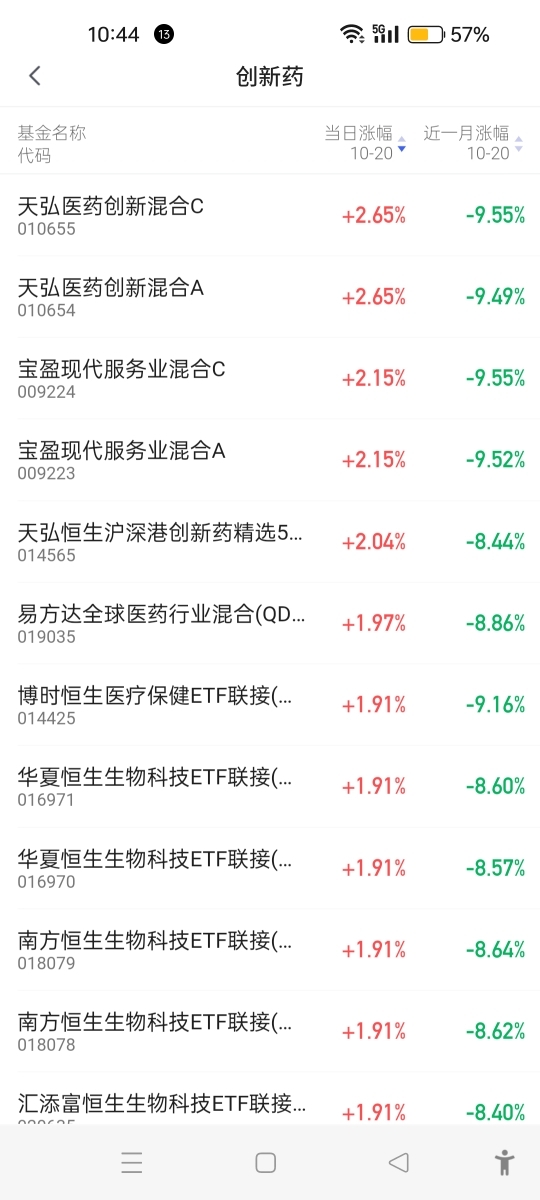 截止目前创新药涨幅1%以上的基金里面没有这一只