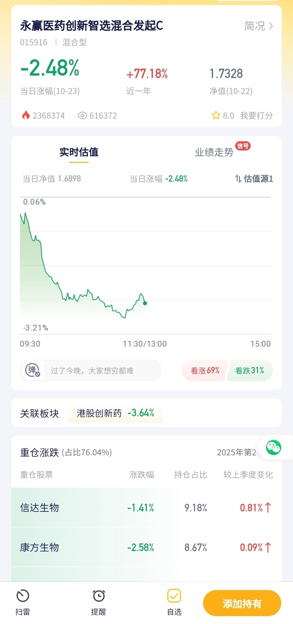医药创新类基金今天跌得厉害,医药板块近期波动大,政策和市场需求等因素影响下,表现不佳,这只基也跟着大跌,让人挺揪心。