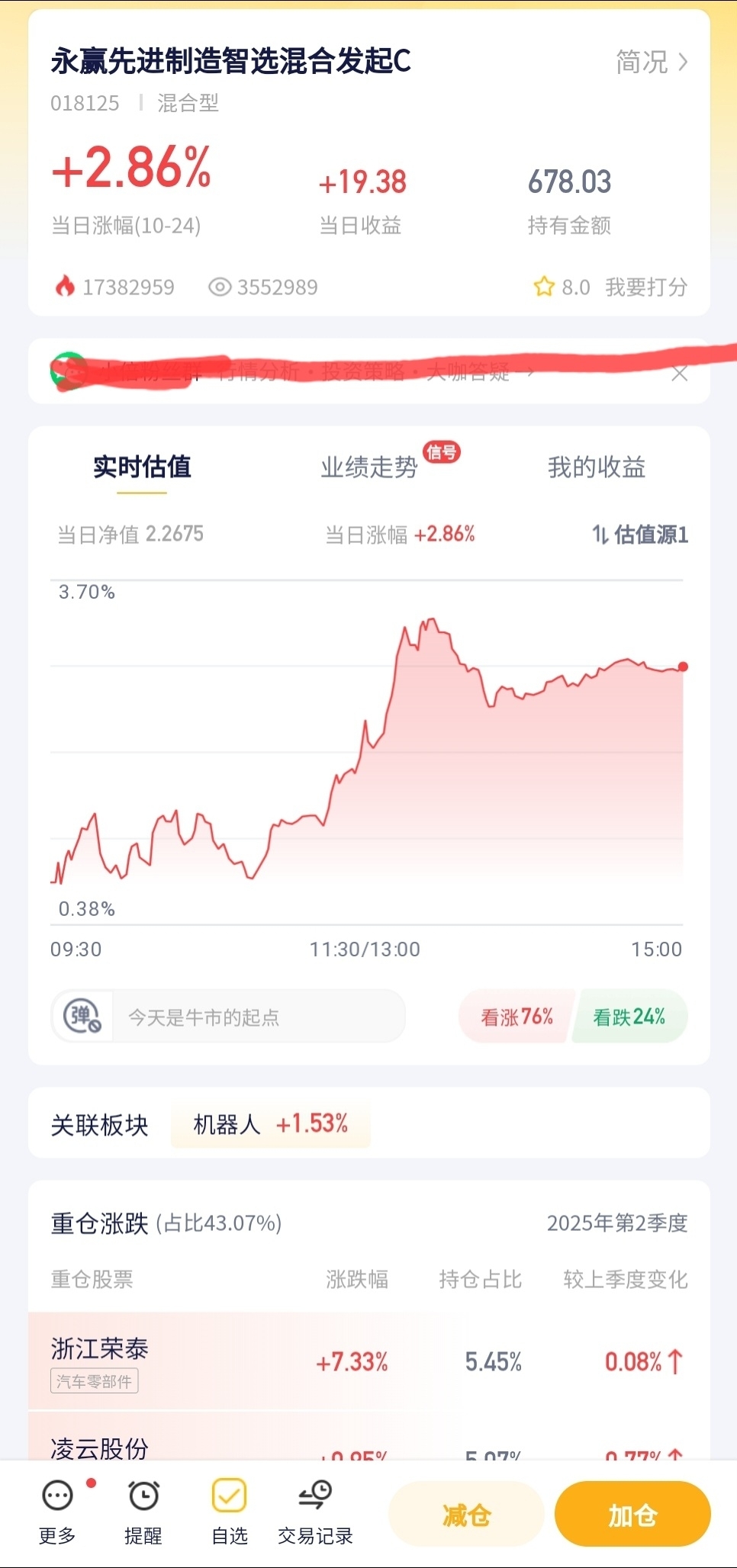 医药板块今天表现一般,永赢这医药基金就微涨了点,在医药赛道里算是小打小闹,持仓的朋友收益聊胜于无。