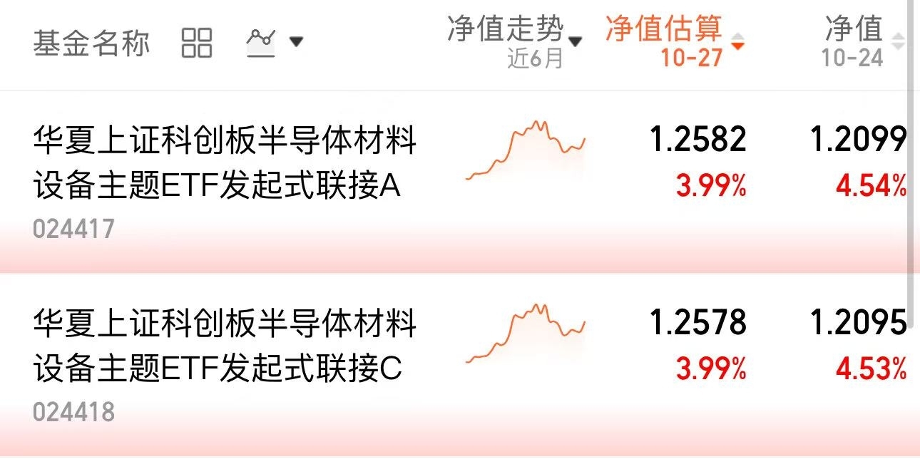 今天大概率又是赚收益的一天,开盘就涨3%+,还是要拿$华夏上证科创板半导体材料设备主题ETF发起式联接C$这样持仓收益好,上涨动力足的基金