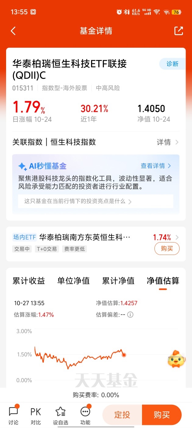 今天恒生科技板块继续走高,估值稳步回升,这波机会真不能错过!美方不再加征高额关税,解决了板块一大外部顾虑,美联储降息预期又持续升温,加上南向资金持续增持,多方力量都在支撑板块。现在AI应用越来越广,板块里的很多企业都在布局相关业务,长期成长逻辑清晰。华泰柏瑞近期表现特别亮眼,近半年稳步上涨,抗波动能力强,能帮咱们分散风险,一键布局港股科技龙头,不用担惊受怕,适合普通投资者长期持有。#科技热点摊开业啦# $华泰柏瑞恒生科技ETF联接(QDII)C$
